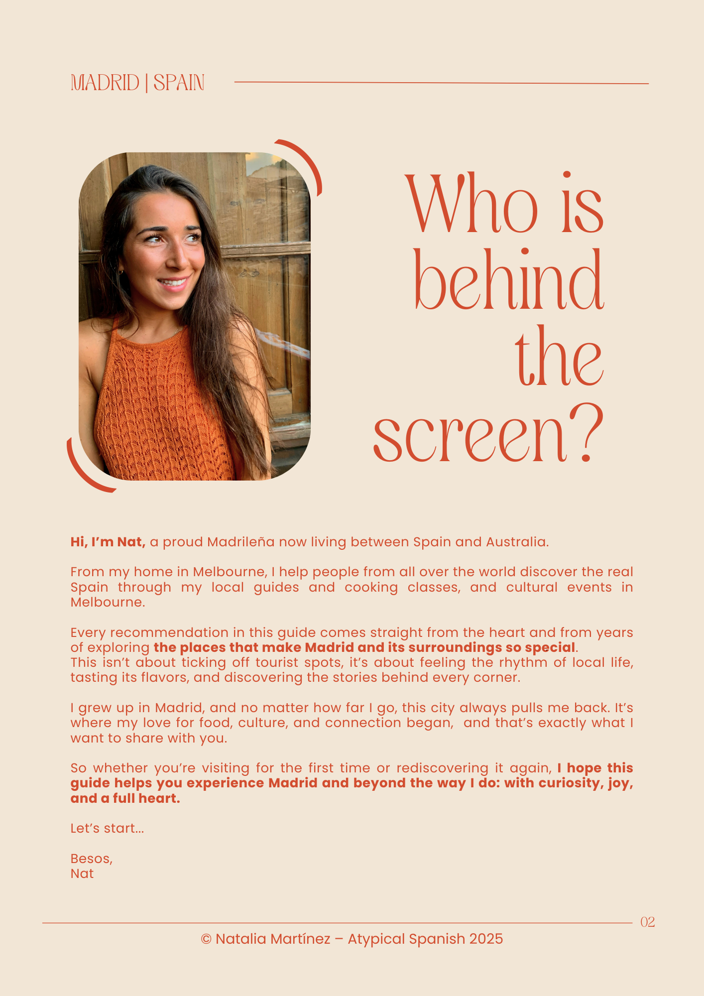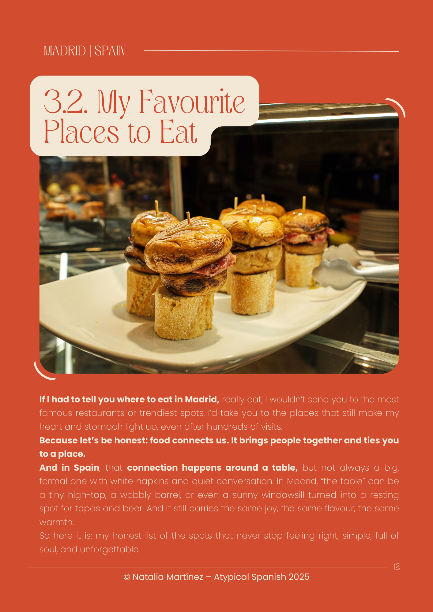 This digital travel guide is designed for first-time visitors who want to experience Madrid in a real, local and relaxed way — not just visit the main sights.